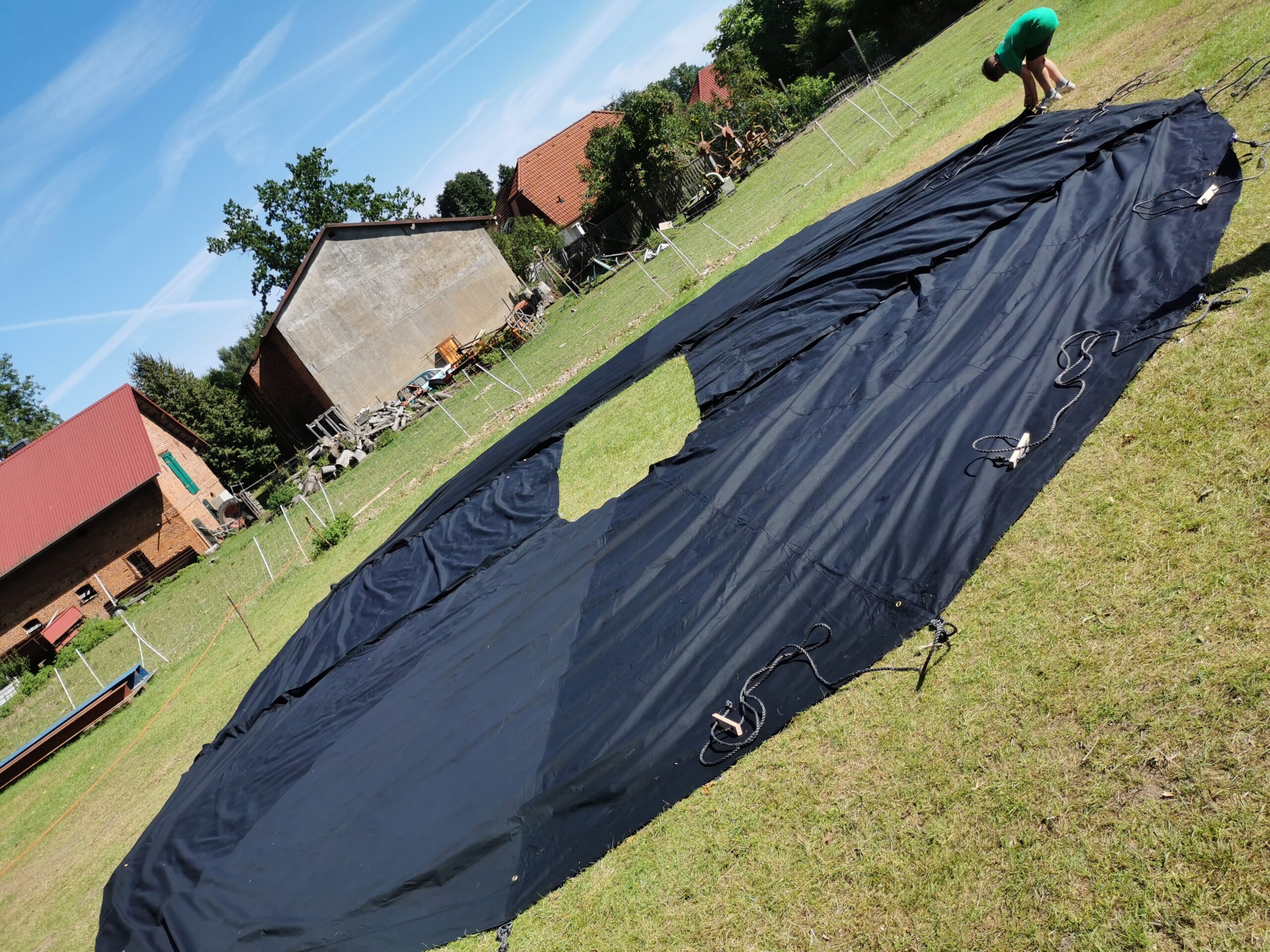 Eigentlich war es geplant, eine „normale 8er Jurte“ anzuschaffen. Doch weil sich zum Sommercamp doch mehr Kinder angemeldet hatten, als ich in meinen Förderanträgen (Landesmittel und Kreismittel) zunächst angegeben hatte, reifte der Gedanke die dadurch zu erwartenden Mehreinnahmen vom Kreis und vom Land mit der Förderung der Stiftung zu kombinieren und somit gleich eine Theater-/ Ovaljurte anzuschaffen. Nach Rücksprache mit dem Kirchgemeinderat erhielt ich die Zusage, dass ich auch das größere Zelt beschaffen dürfe, auch wenn dadurch etwas mehr Kosten auf die Gemeinde zukämen (Eigenmittel).